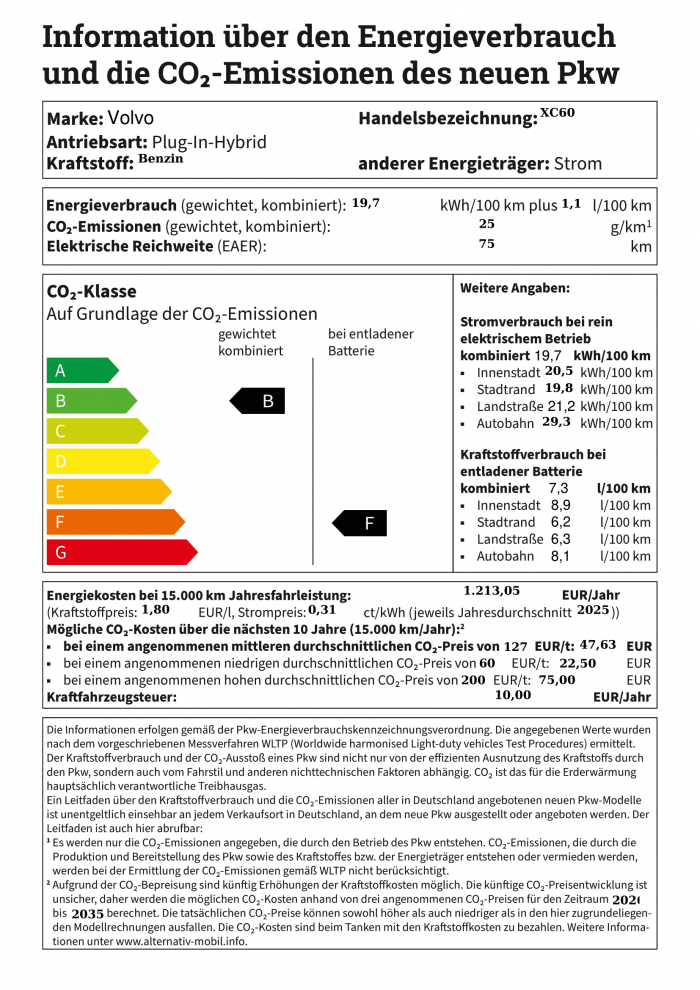 *Ein Privatkunden-Kilometer-Leasing-Angebot der Volvo Car Financial Services – ein Service der Santander Consumer Leasing GmbH (Leasinggeber), Santander-Platz 1, 41061 Mönchengladbach – für einen Volvo XC60 T8 AWD Plug-in Hybrid Plus Black Edition, Benzin, Automatikgetriebe, Kraftstoff- / Energieverbrauch kombiniert: 0,9 l Benzin/100 km plus 18,10 kWh Strom/100 km | CO2-Emission 22 g/km | CO2-Klasse: F (kombinierte Werte gem. WLTP). Leistung 309 PS (228 kW) / 149 PS (110 kW). Monatliche Leasingraten bei einer Laufzeit von 24 Monaten, ohne Anzahlung: 240,00 € bei 10.000 km jährlich. Angebot zzgl. Überführungskosten i. H.v. 1.490,00 Euro inkl. MwSt, zzgl. Zulassungskosten. Bonität vorausgesetzt. Verbrauchern steht für Darlehensverträge ein Widerrufsrecht zu. Angaben entsprechen zugleich dem 2/3 Beispiel nach § 6a Abs. 4 PAngV. Gültig bis 31.12.2025. Das Angebot enthält Beispielfotos eines Fahrzeugs der Baureihe, die Ausstattungsmerkmale des abgebildeten Fahrzeugs sind nicht Bestandteil des Angebots.
